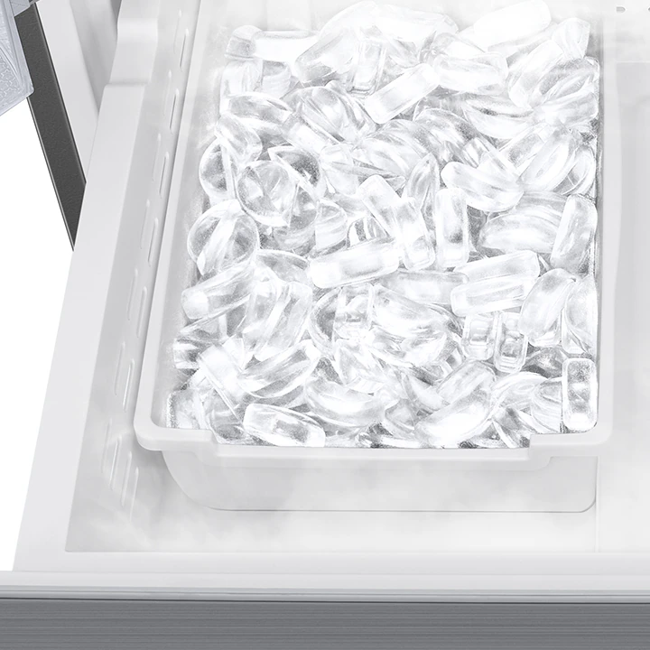Pour rester au frais, assurez-vous de toujours avoir beaucoup de glace. La machine à glaçons automatique* fabrique et stocke automatiquement des glaçons. Vous pouvez donc savourer des boissons froides quand vous en avez besoin sans avoir à vous rappeler de remplir le bac à glaçons. Cela signifie que vous serez toujours prêt à affronter les journées les plus chaudes ou pour les fêtes les plus animées!